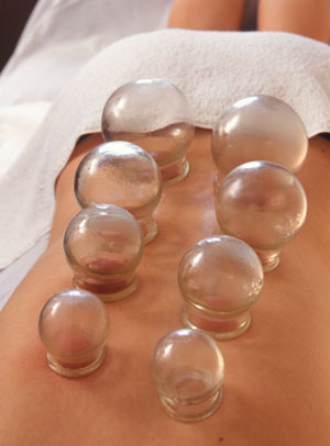 There are 2 ways to create suction—with heat or a pump. In the first technique, the practitioner takes a plastic or glass cup the size of a baby food jar and ignites a flame inside of it. The flame causes a vacuum inside the cup and it is immediately placed on the skin. The second technique uses a pump to create a vacuum inside a rubber cup. In both cases the vacuum inside the cup pulls on the skin to create the therapeutic effects. I use small Japanese glass cups & massage oil to obtain the required result (no flame/no suction!).